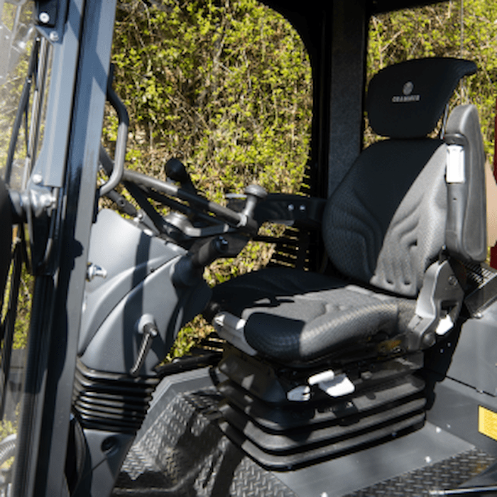 Vanuit de luchtgeveerde stoel bedient u snelheid, werktuigen en instellingen via de command arm en het overzichtelijke 3,5” kleurendisplay. De joystick maakt bediening met één hand mogelijk, terwijl het dubbele pedaalsysteem zorgt voor intuïtief schakelen tussen vooruit en achteruit – ideaal bij intensief manoeuvreerwerk.