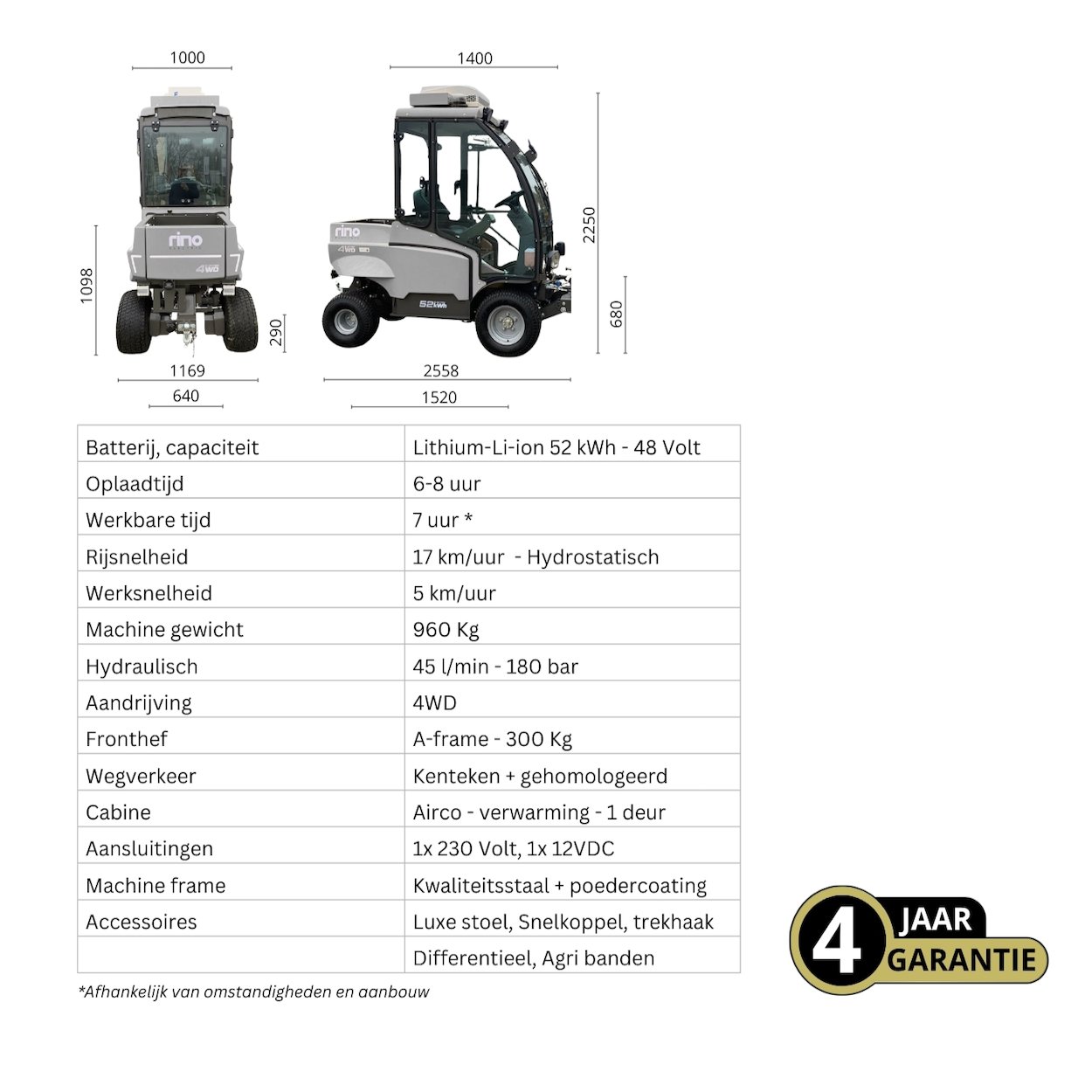 Werino elektrische werktuigdrager 4WD (2500)/tractor van RINO Electric